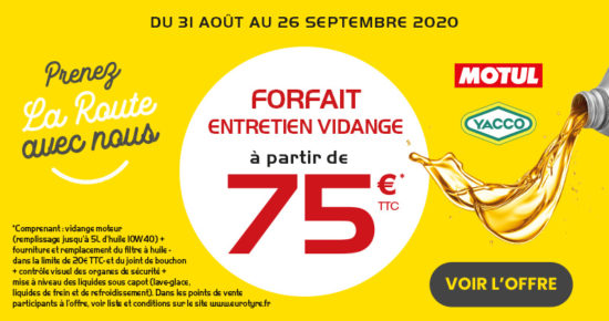 Du 31 Aout au 26 Septembre 2020, profitez de notre forfait entretien vidange à partir de 75€ TTC* Conditions de […]